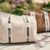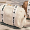 Mommy Club jest dostępna aż w czterech wersjach! Wybierzesz torebkę ze skóry PU w kolorze czarnym lub brązowym z gustownym haftem Mommy Club? A może wolisz nasz ukochany projekt Signature z uroczymi paskami z płótna, dostępny w kolorze złamanej bieli lub zieleni?
